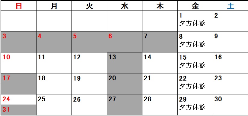 ★ 灰色の部分が休診日です。